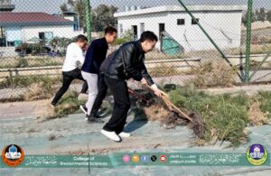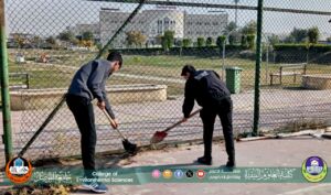 بإشراف السيد عميد كلية العلوم البيئية الاستاذ الدكتور مثنى جاسم الطائي قامت شعبة الشؤون الإدارية بتاريخ 2025/12/1 وبالتعاون مع وحدة الأعمال التطوعية /شعبة النشاطات الطلابية بأعمال تأهيل وتنظيف ملعب الكلية بمشاركة الفريق التطوعي من طلبة الكلية. استعدادا لانطلاق دوري كرة القدم لطلبة المراحل للاقسام كافة.