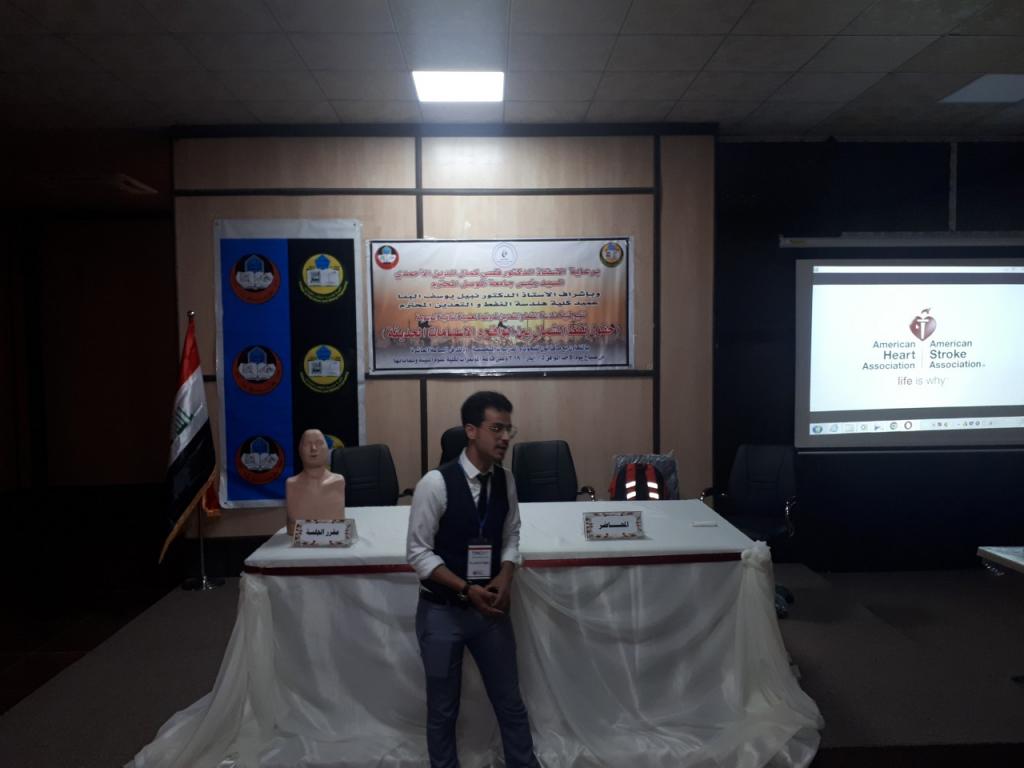 بأشراف مباشر من عميد كلية علوم البيئة وتقاناتها الدكتور مازن نزار فضل أقيمت دورة تدريبية في يوم الأثنين الموافق(٢٠١٩/٥/٦) وذلك في القاعة الرئيسية للكلية من قبل مدربون وأطباء معتمدون في الجامعة الأمريكية للقلب حول الأسعافات الأولية بعنوان(كن إنسانا وأنقذ حياة) تم الحديث عن كيفية إجراء الأسعافات الأولية في الوقت المناسب للحوادث المختلفة لزرع منقذ في كل بيت إضافة إلى تصحيح الأخطاء الناتجة عن بعض العادات السيئة في التعامل مع الحوادث المختلفة قبل نقل المصابين إلى المراكز الصحية،ومما لاشك فيه أن هذه الدورة خدمت الجانب الوظيفي فالدورة قدمت المعلومات التي تهم كل من يقوم بعملية الإسعافات الأولية لذلك كان لابد من التعرف على أهم إجراءات ووسائل الأسعاف الأولية والتي تساهم وبشكل فعال في إنقاذ حياة الناس في الوقت المناسب