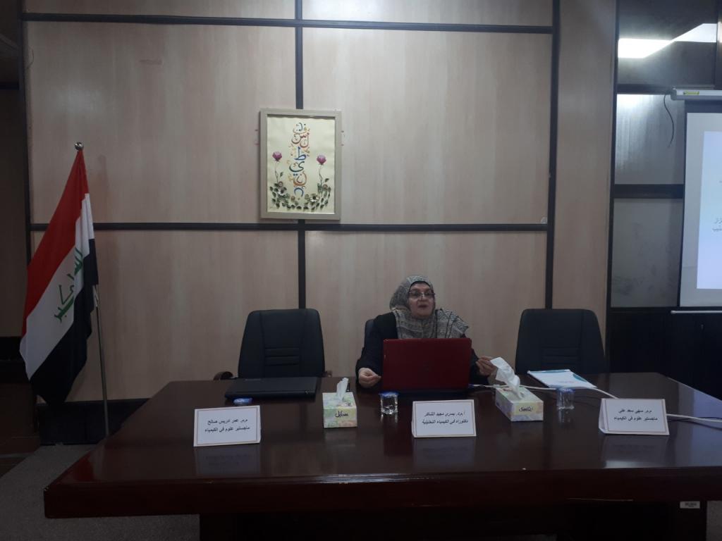 ضمن الفعاليات العلمية والموسم الثقافي لكلية علوم البيئة وتقاناتها ولحرص عمادة الكلية على تسخير الأجهزة العلمية المتوفرة في مختبرات الكلية لصالح أساتذتها وطلابها والتي ستساهم على رفع مستوياتهم وقدراتهم في إنجاز البحوث العلمية أقام قسم علوم البيئة دورة تدريبية في يوم الثلاثاء الموافق (٢٠١٩/٣/١٢) تحت عنوان طرائق التحليل الكيميائي حيث هدفت هذه الدورة الى إقامة محاضرات مكثفة لمختصين في مجال الكيمياء وتضمنت عدة محاور منها طرائق التحليل الحجمي والألي وأنواع المحاليل الكيميائية وطرق تحضيرها وإجراء الحسابات وبالتالي إيجاد نتائجها قامت بشرح الجزء النظري الدكتورة يسرى مجيد الشاكر وتوضيح الجزء العملي كل من السيد عمرأدريس والسيدة سهى سعد التدريسيين في قسم علوم البيئة حيث من الضروري معرفة كيفية تحضير المحاليل الكيميائية القياسية والثانوية المستخدمة لأجراء هذه التحليلات مع معرفة الألية ونوع الأجهزة المستخدمة فيها وإجراء الحسابات الكيميائية للوصول إلى نتائج هذه التحليلات وإجراء إمتحان في نهاية الدورة ،وقد حضر الدورة جمع من تدريسيي وموظفي الكليات في الجامعة المختصين في مجال الكيمياء