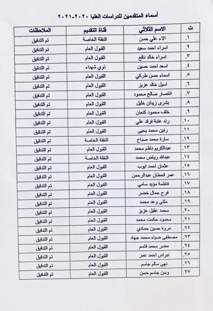 إعلان من شعبة الدراسات العليا الى المتقدمين للدراسات العليا