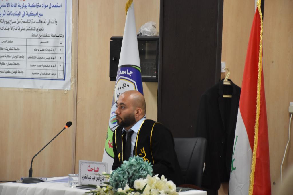 ناقشت كلية علوم البيئة وتقاناتها رسالة الماجستير للطالب ضاري قيس حيدر عبد الكريم عن رسالته الموسومة ” استعمال مواد متراكمة بولمرية المادة الاساس مدعمة بمساحيق مواد سيراميكية في البناء ذات تاثير بيئي ايجابي” اليوم الثلاثاء 14 ايلول ٢٠٢١ على قاعة الاجتماعات في كلية علوم البيئة وتقاناتها.تناولت الدراسة المواد البولمرية التي تحظى باهتمام كبير من لدن الباحثين بسبب قدرتها على تحسين خواصها بشكل عام وخواصها الفيزيائية بشكل خاص كما تطرقت الدراسة الى التركيبة الهندسية الداخلية للمواد البوليميرية التي تعد مواداً ذات هندسية فراغية تحتوي على مساحات كبيرة يمكن من خلالها اجراء تغييرات او تعديلات.هدفت الدراسة الى أختيار مادة بولمرية (ايبوكسي ) واستخدام هذه المادة كمادة اساس لتصنيع مادة متراكبة بولمرية المادة الاساس بعد تدعيمها بمساحيق مادة مختارة ومن ثم اختبار قدرات هذه المادة المتراكبة للخواص الميكانيكية لغرض تحديد مدى صلاحية هذه المواد لتكون جزءاً من المواد المستخدمة في البناء عن طريق اخضاعها الى مجموعة من الفحوصات الميكانيكية.ترأس لجنة المناقشة الاستاذ الدكتورة نجاة احمد دحام/ جامعة تكريت وعضوية كل من الاستاذ المساعد الدكتورة يسرى مجيد الشاكر/جامعة الموصل والاستاذ المساعد الدكتور محمود احمد حمود/جامعة الموصل واشراف المدرس الدكتور احمد نوري محمود/ جامعة الموصل.شعبة الاعلام والعلاقات العامة