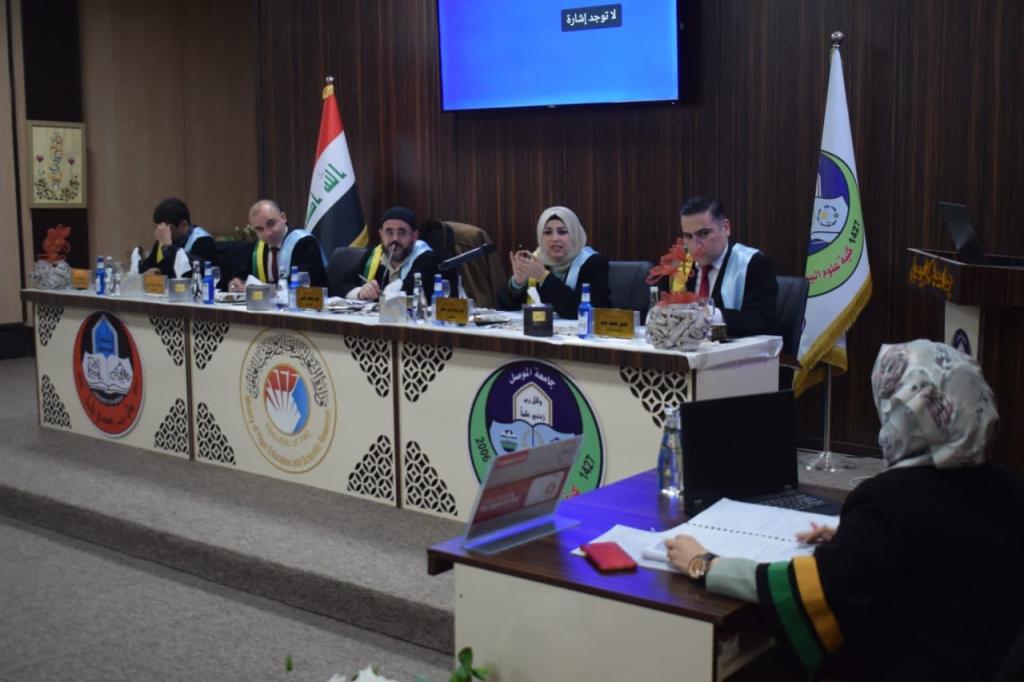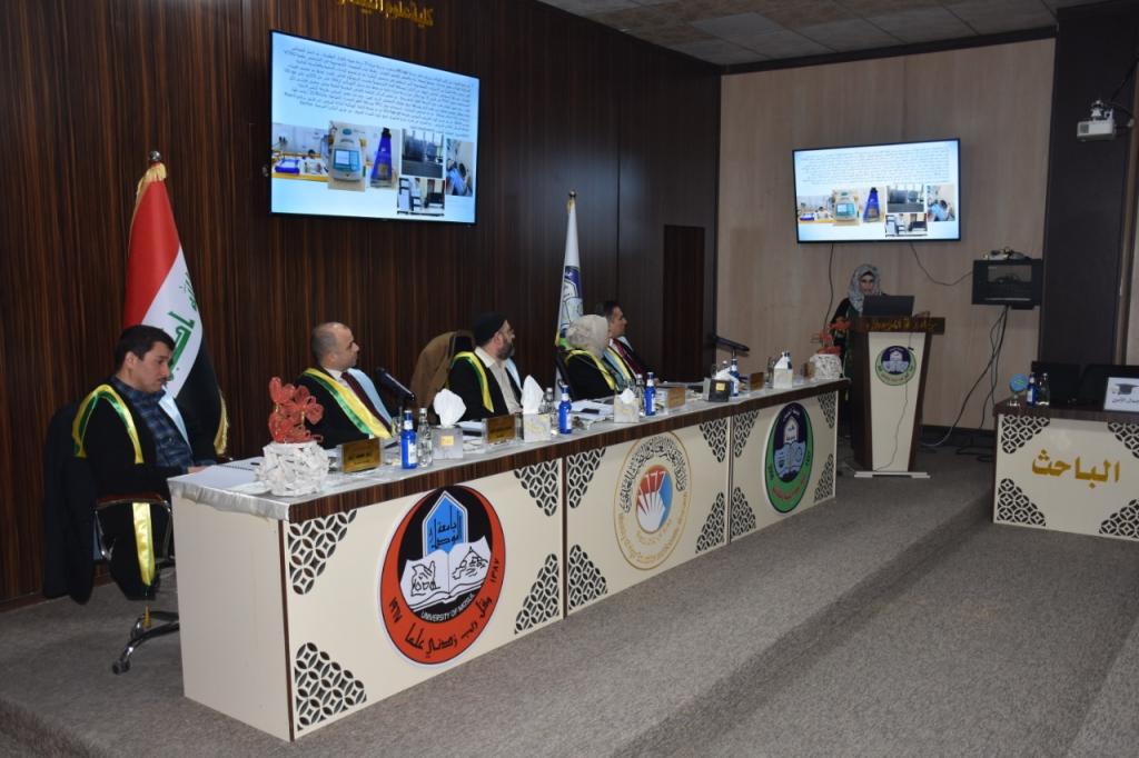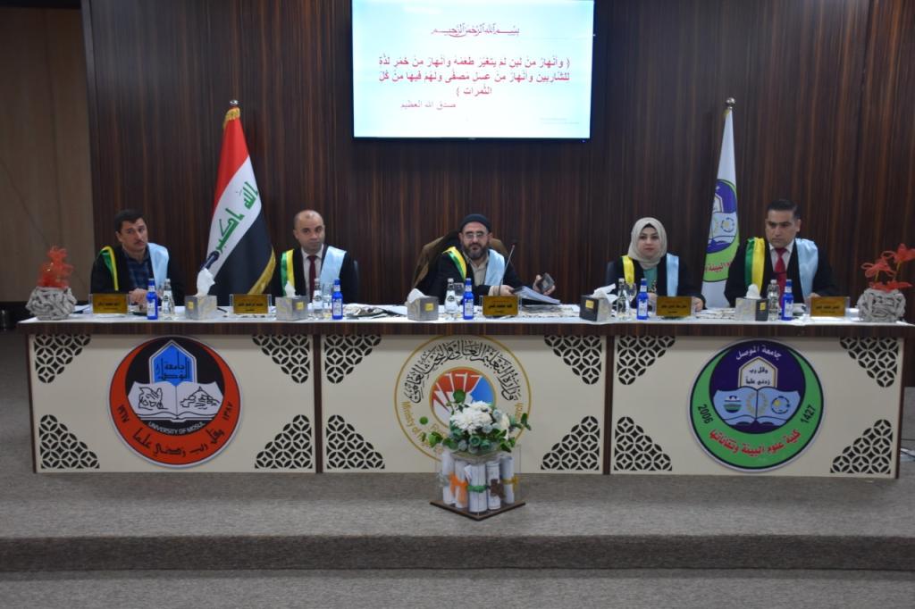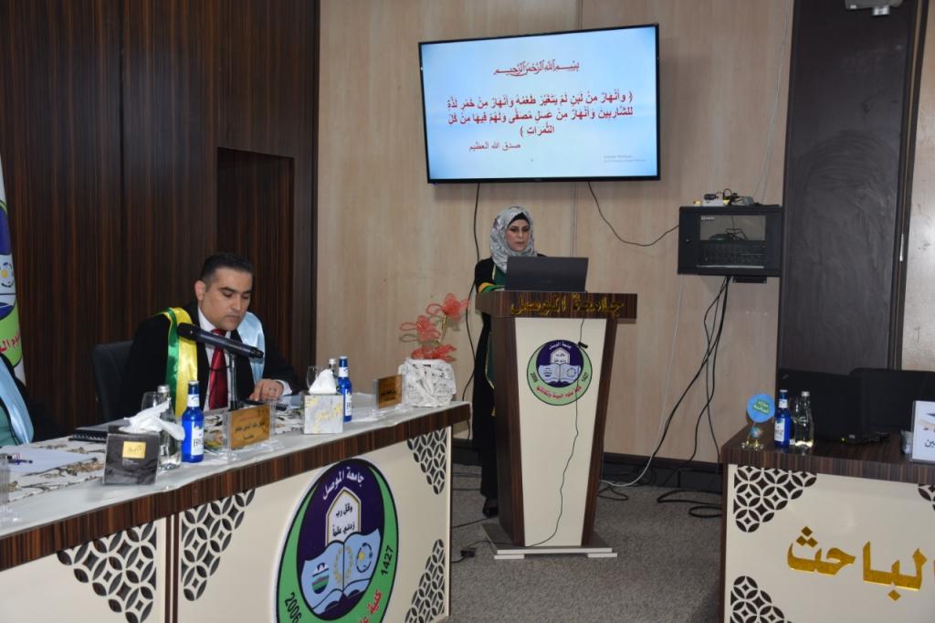 تراس لجنة المناقشة الاستاذ المساعد الدكتور طه محمد تقي/ جامعة الموصل وعضوية كل الاستاذ المساعد الدكتور نهان بهاء الدين جعفر/ جامعة كركوك والاستاذ المساعد الدكتور محمد ابراهيم خليل/ جامعة الموصل.شعبة الاعلام والعلاقات العامة