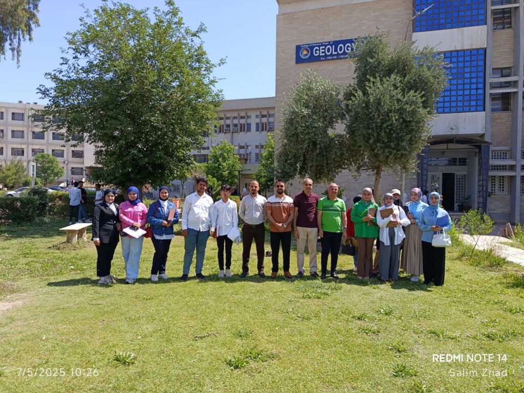 بتوجيه مباشر من السيد عميد كلية العلوم البيئية الاستاذ الدكتور مثنى جاسم محمد الطائي وباشراف السيد رئيس قسم تقانات البيئة الاستاذ المساعد الدكتور اياد فضيل النعمة وضمن الانشطة المستمرة لقسم تقانات البيئة في رفد الجانب العلمي وتعزيز الجانب العملي لدى الطلبة، اجرى طلبة المرحلة الاولى برفقة نخبة من السادة التديسيين زيارة علمية الى كلية العلوم/ قسم علوم الارض، يوم الأربعاء الموافق ٧ ايار ٢٠٢٥.