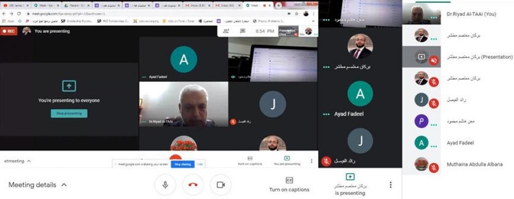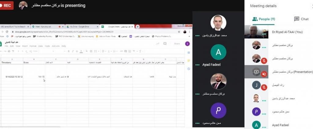 تنفيذا لتوجيهات السيد رئيس جامعة الموصل الاستاذ الدكتور قصي كمال الدين الاحمدي وباشراف مباشر من قبل السيدة عميد الكلية الاستاذ المساعد الدكتورة يسرى مجيد الشاكر جرى اليوم الثلاثاء الموافق 17/6/2020 عقد اجتماع للجنة الامتحانية في قسم تقانات البيئة برئاسة الأستاذ المساعد الدكتور رياض عبدالله فتحي رئيس القسم وحضور جميع الاعضاء لمناقشة سير الامتحانات والعقبات التي تعترض الطلبة واللجنة كما تم مناقشة افضل واسلم طرق تصحيح الدفاتر الامتحانية للحفاظ على حقوق الطالب.