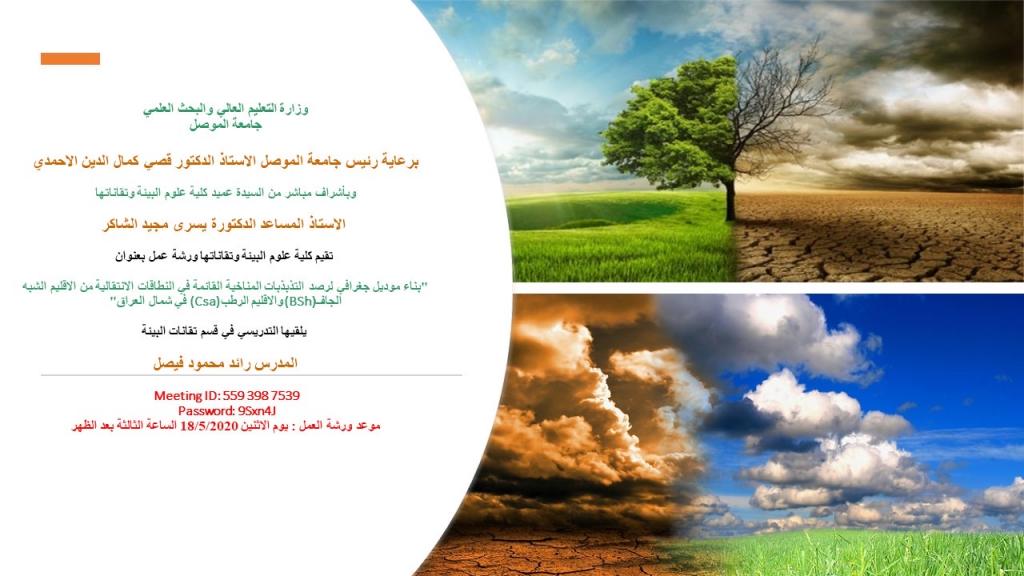 قسم تقانات البيئة يقيم ورشة عمل بعنوان “بناء موديل جغرافي لرصد التذبذبات المناخية”