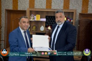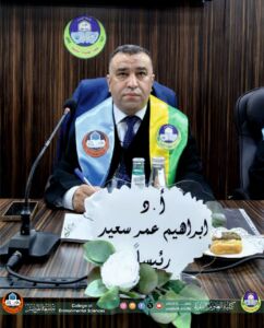وفي ختام المناقشة، قدم عميد كلية العلوم البيئية الاستاذ الدكتور مثنى جاسم الطائي كتاب شكر وتقدير إلى الأستاذ الدكتور ابراهيم عمر سعيد، جامعة تكريت / كلية العلوم ، تقديراً لملاحظاته العلمية القيمة وتوجيهاتهم السديدة وتحمله عناء السفر.