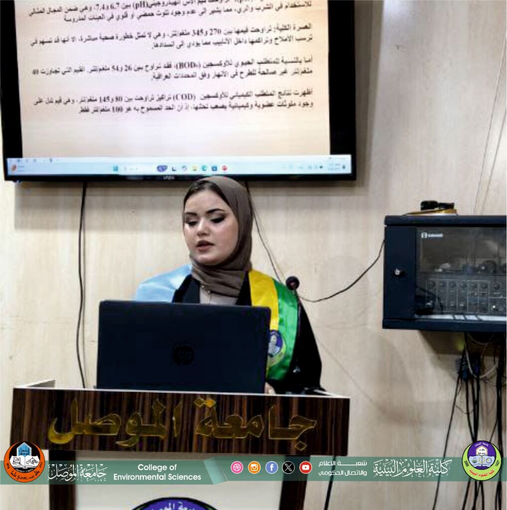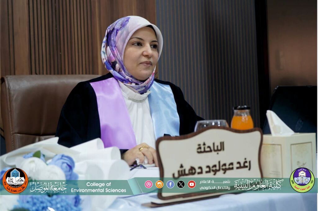 برعاية السيد رئيس جامعة الموصل الأستاذ الدكتور وحيد محمود الابراهيمي وبمتابعة السيد عميد كلية العلوم البيئية الاستاذ الدكتور مثنى جاسم الطائي , جرت صباح اليوم الاثنين الموافق 8 أيلول 2025 مناقشة رسالة الماجستير في قسم علوم البيئة والموسومة ” تأثير العوامل البيئية والتلوث في شيخوخة الخلية وحيويتها ” للطالب محمد ايدن جلال على قاعة مناقشات كلية هندسة النفط والتعدين.
