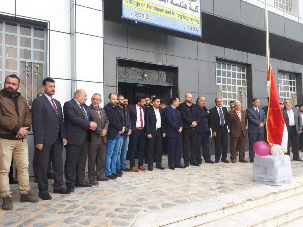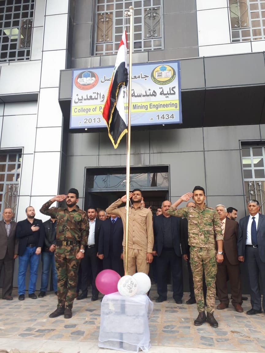 كلية علوم البيئة وتقاناتها وكلية هندسة النفط والتعدين تحتفلان في يوم الثلاثاء الموافق ٢٠١٨/١٢/١١ بمشاركة أساتذتها ومنتسبيها وطلبتها بمناسبة تحرير مدينة الموصل وعودتها الى حضن الوطن من عصابات داعش الأرهابية ويتقدم منتسبي وطلبة الكليتين بالشكر والعرفان لأصحاب الفضل أبطال القوات المسحلة والحشد الشعبي الذين ضحوا بأرواحهم في سبيل تحقيق النصر العظيم وسيبقى هذا اليوم خالد في تاريخ العراق ،لكل زمان رجال ،ورجال زماننا أبطال القوات الأمنية الذين سطرواأروع الملاحم وكتبوا أسماءهم في سجل التاريخكما وتضمنت الإحتفالية وقفة تضامنية أمام مبنى الكلية ومراسيم رفع العلم العراقي