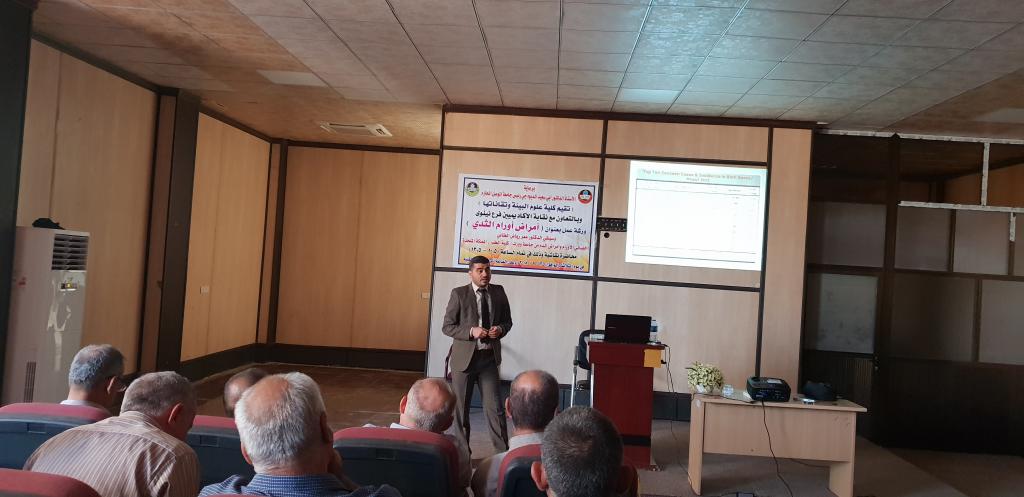 برعاية الأستاذ الدكتور أبي سعيد الديوه جي رئيس جامعة الموصل وإشراف مباشر من عمادة كلية علوم البيئة وتقاناتها وبالتعاون مع نقابة الأكاديميين فرع نينوى نظمت الكلية ورشة عمل تثقيفية متميزة في يوم الثلاثاء الموافق ٢٠١٨/٩/٢٥ تعزيزا للتوعية بأهمية الكشف المبكر عن مرضسرطان الثدي وشرحا مستفيضا عن الأسباب الرئيسية التي تؤدي إلى هذا المرض وشهدت الورشة التي تندرج ضمن سلسلة المبادرات التي تقيمها الكلية وقدمها الدكتور عمر رياض الطائي أخصائي الأورام وأمراض الدم من جامعة وورك /كلية الطب،المملكة المتحدة حضورا لافتا،وتتجلى أهداف الورشة إلى الأضاءة على أهمية إجراء الفحوصات للكشف المبكر فضلا عن التدابير الوقائية التي يمكن إتخاذها والتأكيد على أهمية الفحوصات الدورية مثل الفحص الذاتي والسريري وفحص الماموجرام وبالتالي خفض معدلات الإعتلال والوفيات ،وفي حال إكتشاف هذا المرض لدى النساء في وقت مبكر تكون فرص الشفاء والعلاج منه أكبر من إكتشافه في وقت متأخر وكذلك وضح المراحل التي تمر بها السيدة المصابة وأبرز المعوقات التي قد تتعرض لها وركز على كيفية التعامل مع الحالات المصابة في جميع مراحلها وأكد على أهمية إجراء الفحص الذاتي وذلك لأكتشاف أي ورم أو كتلة داخل الثدي في مراحلها الأولى وفي نهاية الورشة دعى الدكتور لأهمية توحيد جميع الجهود لدى المؤسسات الحكومية والأهلية في سبيل إكتشاف هذا المرض