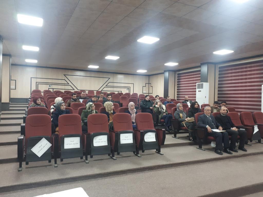التقت السيدة عميد الكلية الدكتورة يسرى مجيد شهاب الشاكر برفقة السيد معاون العميد للشؤون الأدارية ومسؤول شعبة الدراسات العليا في يوم الأحد الموافق (٢٠١٩/١٢/٢٩) بطلبة الدراسات العليا في إجتماع موسع تضمن مناقشة مجموعة من المحاور العلمية الخاصة لطلبتنا الأعزاء من هم في مرحلة البحث أستمعت فيها السيدة عميد الكلية إلى مشاكل الطلبة وأوعدت بتذليل الصعاب التي تواجههم من ناحية العمل والوقت وتوفير المستلزمات البحثية كما شجعت بضرورة العمل في مختبرات الكلية وتحت إشراف المسؤول الفني لضمان سلامتهم وفي ختام اللقاء تمنت للجميع الموفقية والنجاح لأكمال المسيرة العلمية .