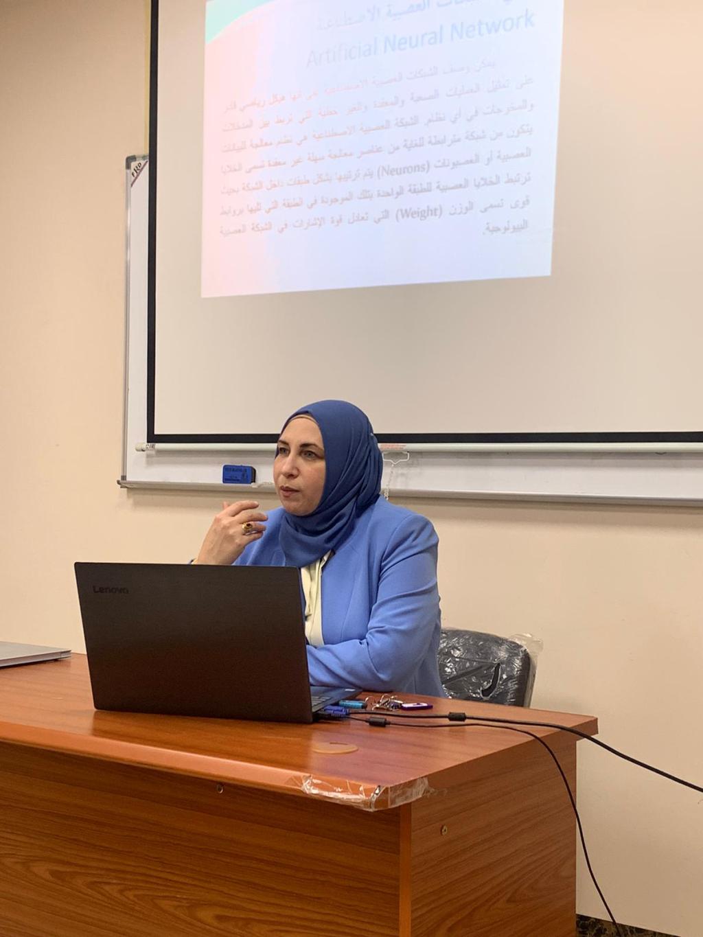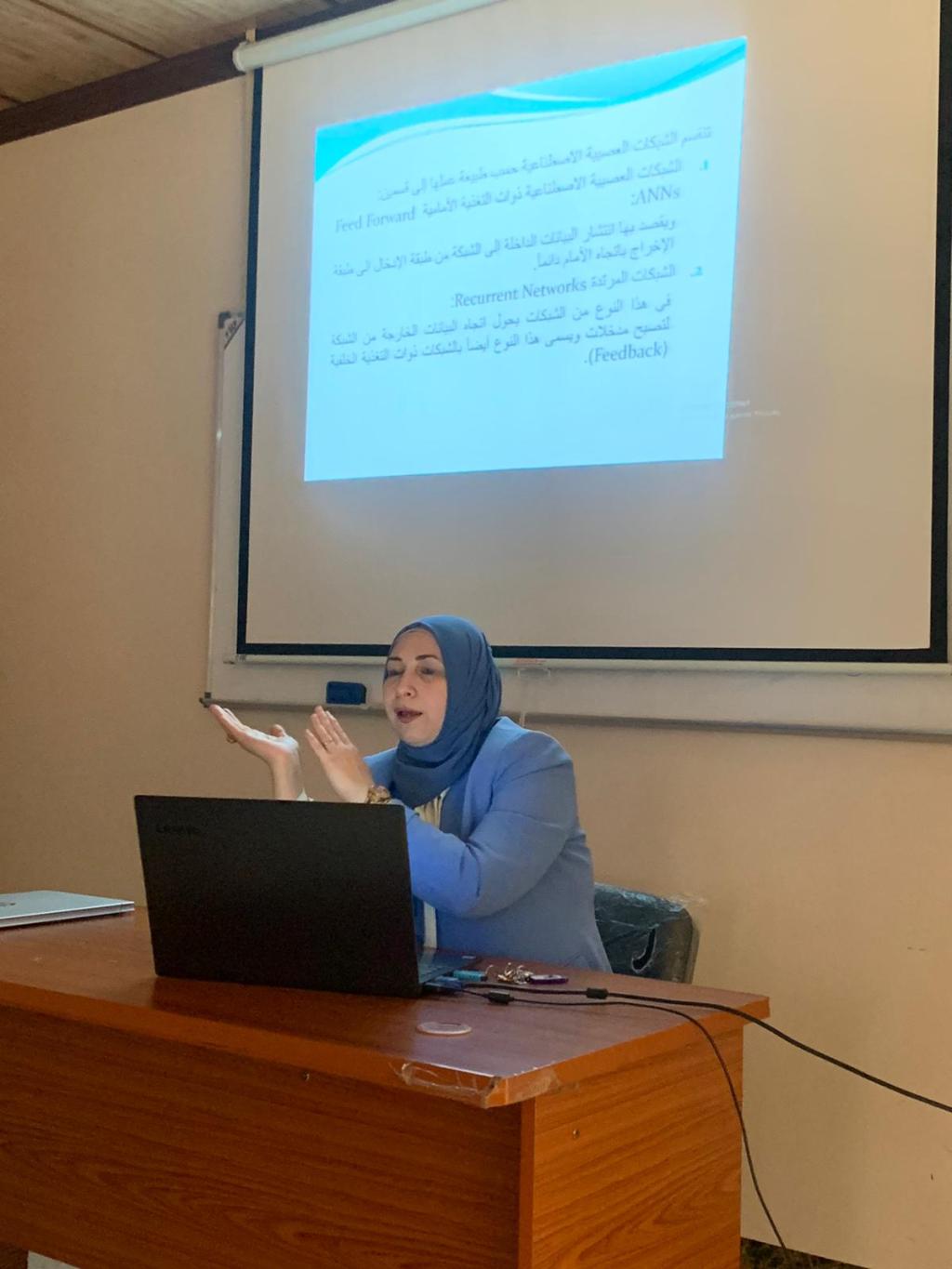 شارك كل من م.م. رغد حازم سعيد و م.م. فرح خزعل سعيد التدريسيتان في قسم تقانات البيئة في كليتنا في الدورة المقامة في مركز التحسس النائي بعنوان (اساسيات الذكاء الاصطناعي) للفترة من 23-27 تشرين الاول 2022 حيث القت م.م. رغد حازم سعيد محاضرة بعنوان سمات وتطبيقات الذكاء الاصطناعي وتناولت اهم سمات الذكاء الاصطناعي واهميته وكذلك تأثيره على معدل الإنفاق العالمي في اخر عشرين سنة ومعدل الإنفاق كما متوقع مستقبلا. كما تناولت اهم تطبيقات الذكاء الاصطناعي في شتى المجالات ومنها المجالات الهندسيه والرياضيات والبيئة والصحة والطاقه وفي مجال النقل وعدة نواحي اخرى وكذلك ابرز التحديات التي تواجه الذكاء الاصطناعي. القت بعدها م.م. فرح خزعل سعيد محاضرة عن كيفية استخدام برنامج الماتلاب في بناء الشبكات العصبية الاصطناعية وتطرقت لشرح مفصل عن الشبكات العصبية والدوال المستخدمة في تدريبها وتعلمها وكيفية الاستفادة منها.شعبة الاعلام والعلاقات العامة