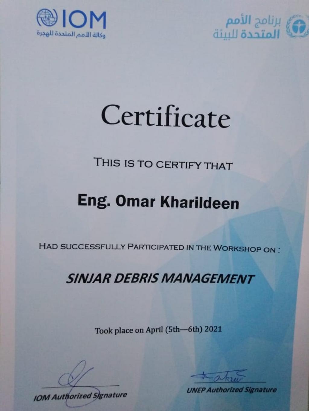 شارك م.م. عمر خير الدين محي الدين ..التدريسي في قسم تقانات البيئة بورشة عمل اقامتها منظمة IOM ومنظمة UNEP بالتعاون مع وزارة البيئة بورشة عمل حول ادارة الانقاض في قضاء سنجار للفترة (5- 6/ 4/ 2021) وقضاء الحمدانية للفترة (7-8/4/2021) وجرى خلال الورشة طرح الافكار والحلول لغرض الاستفادة من هذه الانقاض وتخليص البيئة من مضارها وتحويلها هندسيا من حالة سلبية الى حالة ايجابية، حيث ان التخلص من الانقاض بشكل عشوائي له مضار كبيرة جدا على البيئة …وتم خلال الورشة الاتفاق على آلية لغرض البدء برفع الانقاض والتخلص منها بشكل هندسي مدروس وبما معمول به عالميا…مما يسهل عودة النازحين الى سهول نينوى وغرب نينوى.