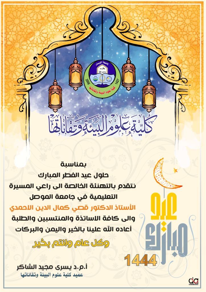 تراس لجنة المناقشة السيد معاون عميد كلية التربية للعلوم الصرفة للشؤون العلمية الأستاذ المساعد الدكتور ياسر يحيى قاسم وعضوية كل من الأستاذ المساعد الدكتور مالك حسين خضر من جامعة الحمدانية/كلية التربية وبإشراف وعضوية الاستاذ الدكتور مشتاق عبد داود الجبوري.