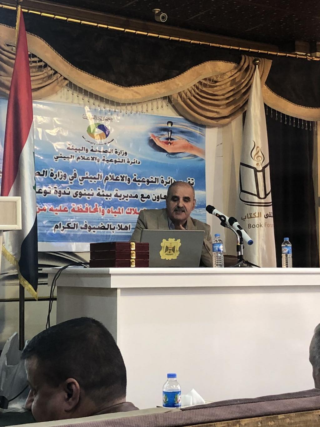 بتوجيه من السيد رئيس جامعة الموصل الاستاذ الدكتور قصي كمال الدين الاحمدي, شارك وفداً علمياً من كلية علوم البيئة وتقاناتها باعمال الندوة التوعوية الموسومة (ترشيد استهلاك المياه والمحافظة عليه من الثلوث) التي اقامتها دائرة التوعية والاعلام البيئي / وزارة الصحة والبيئة, حيث ترأس الوفد السيدة عميد الكلية ا.م.د. يسرى مجيد الشاكر وعضوية كل من ا.م.د. اياد فضيل قاسم و د. ايمن محمد جبر البناء, د. احمد نوري. حيث القت عميدة الكلية محاظرة بعنوان ” مخاطر الاكياس البلاستيكية على صحتنا ” كما القى الدكتور اياد فضيل محاظرة حول ” مضار المواد البلاستيكية على البيئة والحلول الانية ” , حيث ساهم اعضاء الفريق بنقاشات علمية حول موضوع الندوة, وفي نهاية اعمال الندوة تم تكريم السيدة العميدة بدرع الدائرة التوعوية والاعلام البيئي التابع لوزارة الصحة والبيئة.