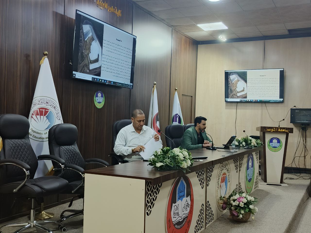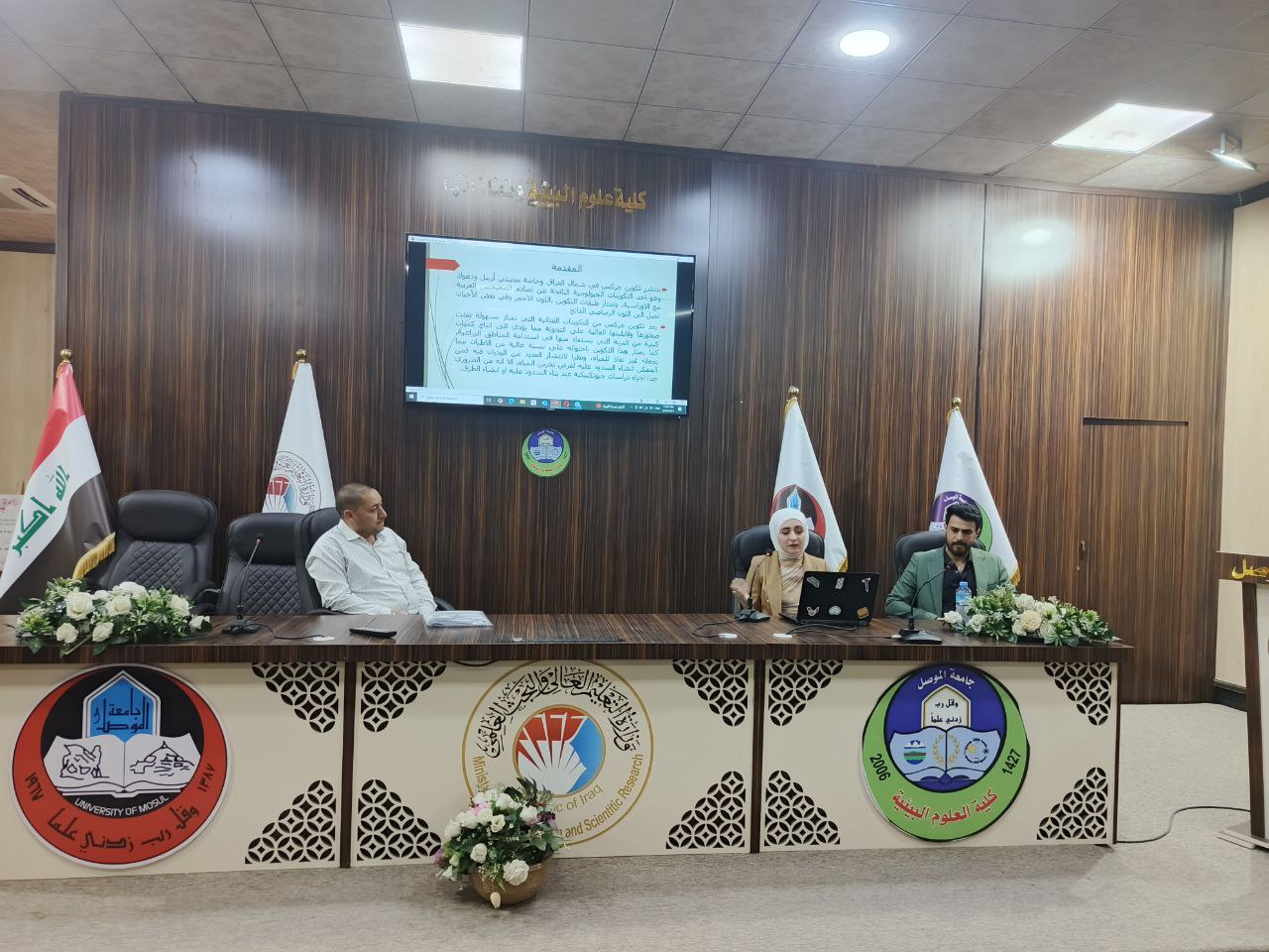 برعاية السيد عميد كلية العلوم البيئية الاستاذ الدكتور مثنى جاسم محمد الطائي ومتابعة السيد رئيس قسم علوم البيئة الدكتور محمد ابراهيم خليل، وضمن سلسلة الحلقات الدراسية لطلبة الدراسات العليا في القسم، اقيم في قسم علوم البيئة بكلية العلوم البيئية حلقتان دراسيتان، يوم الاربعاء الموافق 23 نيسان 2025.