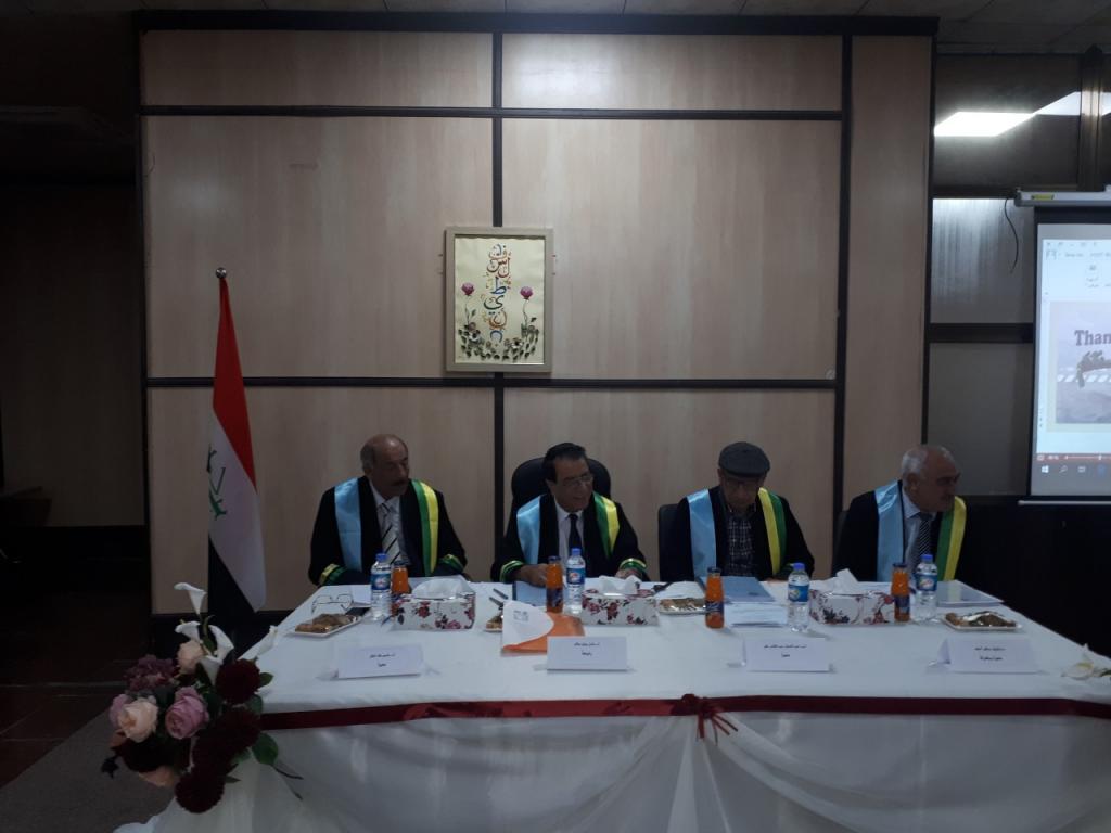 نوقشت وبعونه تعالى وفي تمام الساعة التاسعة من صباح يوم الأثنين الموافق ( ٢٠١٩/٣/٢٥) وعلى القاعة الرئيسية في كلية علوم البيئة وتقاناتها /جامعة الموصل رسالة الماجستير التي أعدتها الطالبة ( إسراء مقبول بشير) الطالبة في قسم علوم البيئة والموسومة ب(دراسة الأثر البيئي لأستخدام مياه الصرف الصحي في تثبيت الكثبان الرملية المتحركة بمحافظة نينوى )وقد تألفت لجنة المناقشة بموجب الأمر الجامعي من الأستاذ الدكتور عادل مولود صالح رئيساً وعضوية كل من الأستاذ المساعد الدكتور جاسم خلف شلال والأستاذ المساعد الدكتور عبد الستار عبدالقادرعلي عضواً والدكتور نايف بكر أحمد عضواً ومشرفاً وبعدها قرأ قرار اللجنة المناقشة وتضمن قبول الرسالة مع منح الطالبة درجة الماجستير وبتقدير جيد جداً