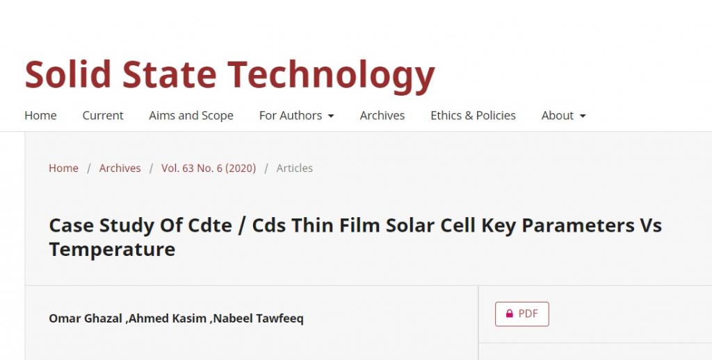 تنفيذا لتوجيهات السيد رئيس جامعة الموصل الاستاذ الدكتور قصي كمال الدين الاحمدي بضرورة الارتقاء بالبحث العلمي وباشراف وتوجيه من قبل السيدة عميد الكلية الاستاذ المساعد الدكتورة يسرى مجيد الشاكرنشر كل من المدرس المساعد عمر غانم غزال التدريسي في كلية علوم البيئة وتقاناتها والمدرس المساعد نبيل زهير توفيق بحثان في دار نشر رصينة ضمن مستوعبات سكوبس حيث كان البحث الاول بعنوان”Damping the Inrush Current for Current Transformer”والثاني بعنوان”Case Study of CdTe / CdS thin film Solar Cell key parameters vs Temperature”متمنين لهم دوام الموفقية والنجاح