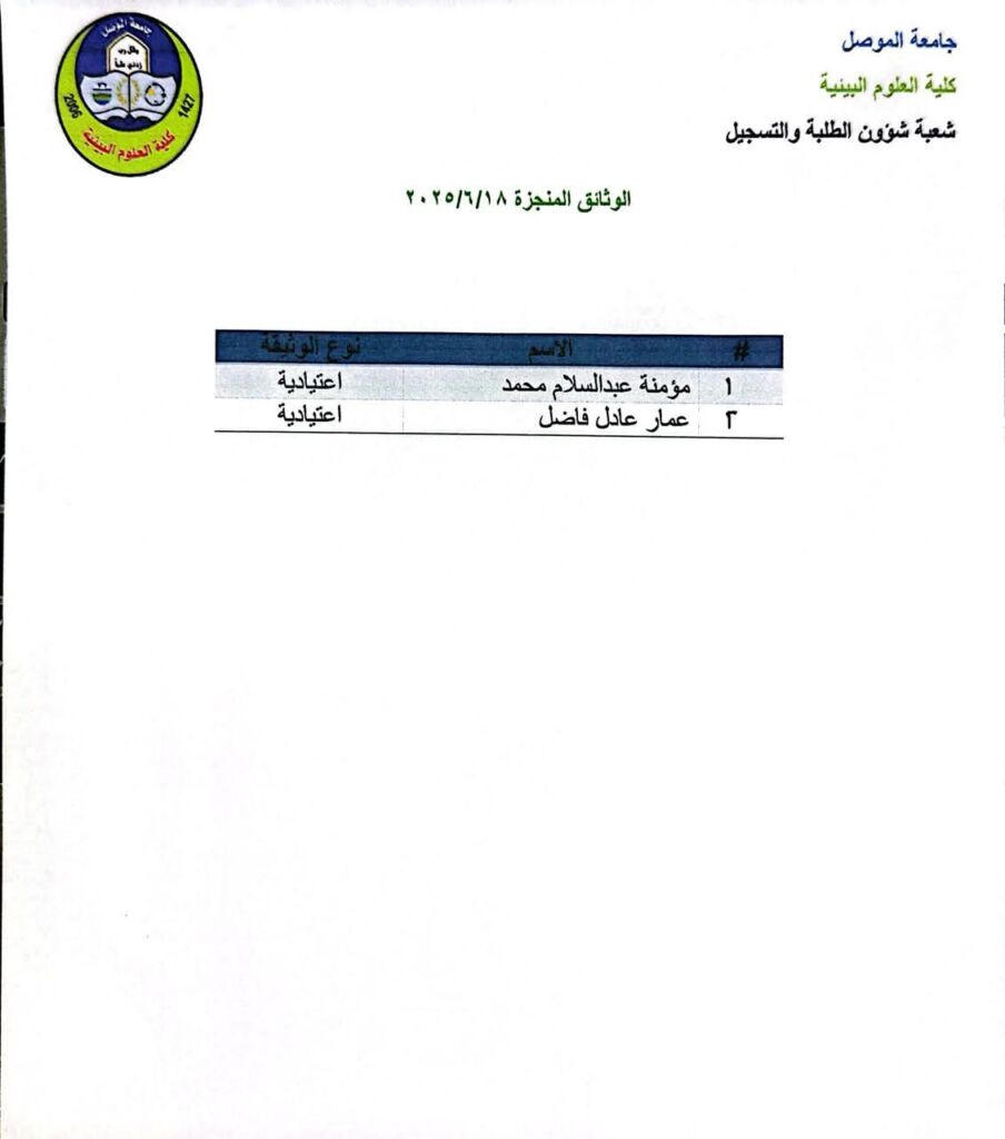 الوثائق المنجزة في شعبة شؤون الطلبة والتسجيل…