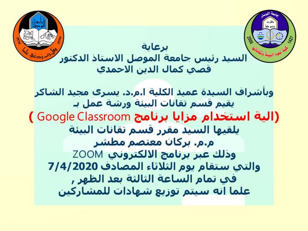 ورشة عمل حول الية استخدام برنامج Google Classroom يقيمها قسم تقانات البيئة