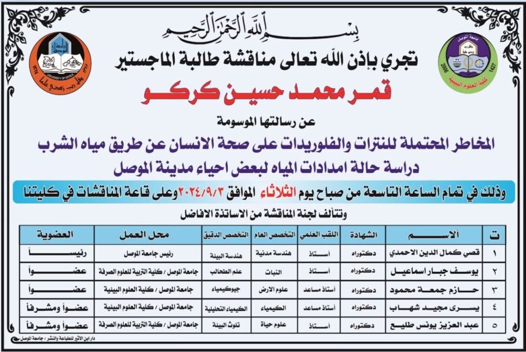 إعلان موعد مناقشة رسالة ماجستير ..