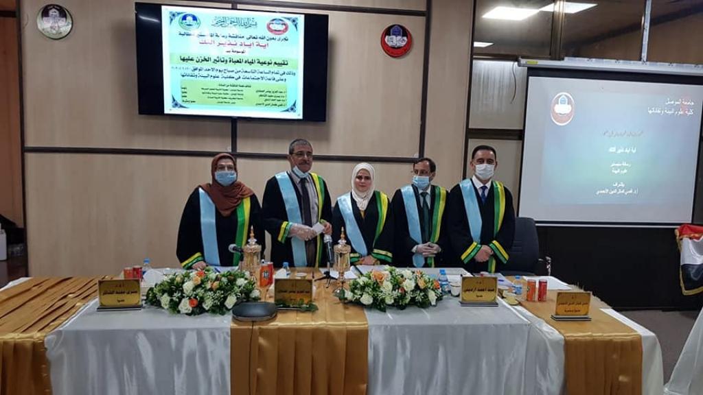 بعضوية وإشراف الأستاذ الدكتور قصي كمال الدين الأحمدي رئيس جامعة الموصل ناقشت كلية علوم البيئة وتقاناتها رسالة الماجستير الموسومة (تقييم نوعية المياه المعبأة وتأثير الخزن عليها)، للطالبة آية اياد نذير التك،تناول البحث دراسة الخصائص الفيزيائية والكيميائية والبكتريولوجية فضلاً عن الكشف عن وجود البلاستك الدقيق لأصناف المياه المعبأة المختارة ومياه الصنبور.هدفت الرسالة الى مقارنة الخصائص مع المواصفات العراقية ومنظمة الصحة العالمية لمياه الشرب وكذلك مقارنتها مع الخصائص المذكورة على ملصقات العبوات ودراسة تأثير مدة وظروف التخزين على الخصائص الفيزيائية والكيميائية والبكتريولوجي فضلاً عن البلاستك الدقيق للمياه المعبأة.حيث ترأس لجنة المناقشة الأستاذ الدكتور عبد العزيز يونس الصفاوي وعضوية كل من الأستاذ المساعد الدكتورة يسرى مجيد الشاكر والأستاذ المساعد الدكتور عبد أحمد أرديني من جامعة تكريتوبعد مناقشة الطالبة والاستماع الى دفاعها عن رسالتها قررت اللجنة قبول الرسالة ومنح الطالبة شهادة الماجستير. متمنين لها دوام الموفقية والنجاح.