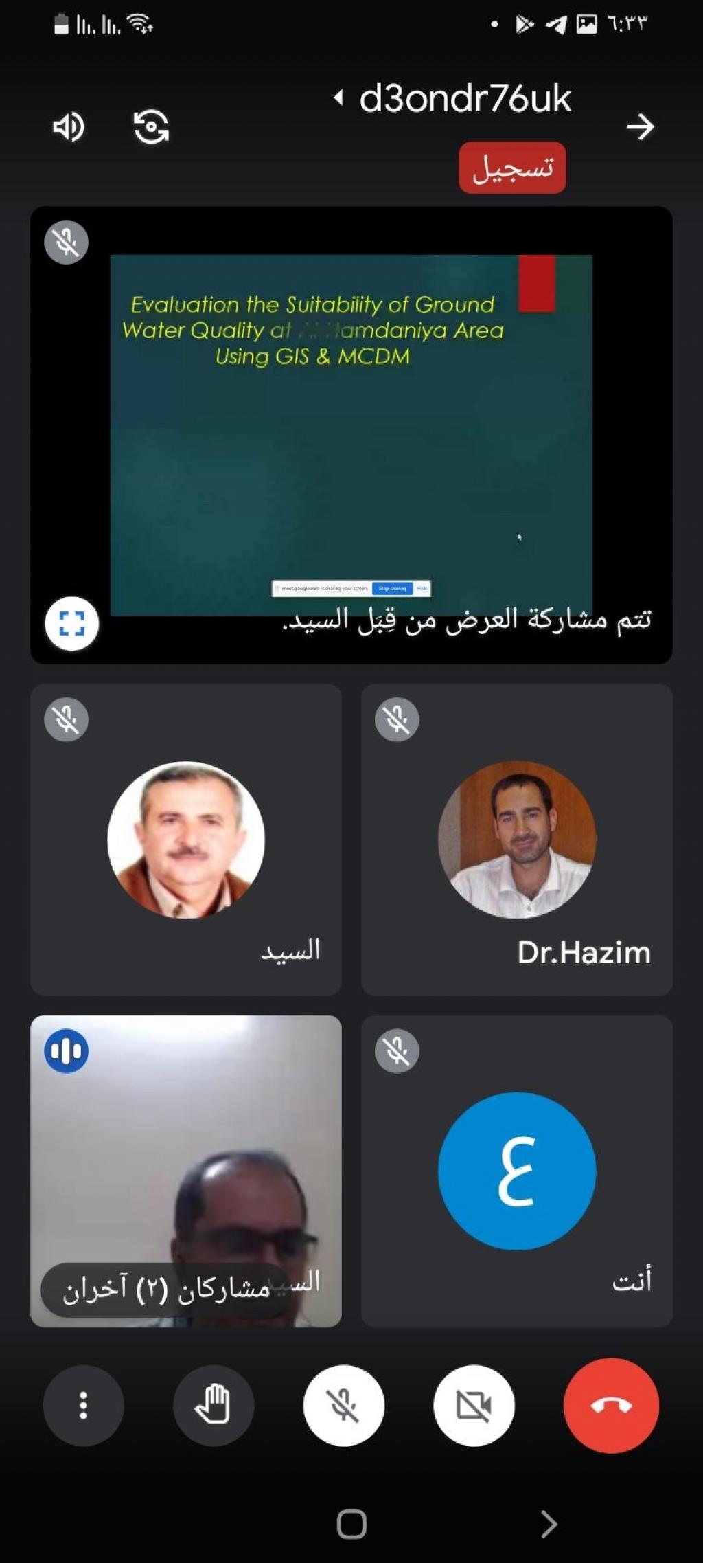 حلقة نقاشية حول تقييم مدى ملاءمة جودة المياه الجوفية في منطقة الحمدانية باستخدام نظم المعلومات الجغرافية و MCDM في قسم تقانات البيئة