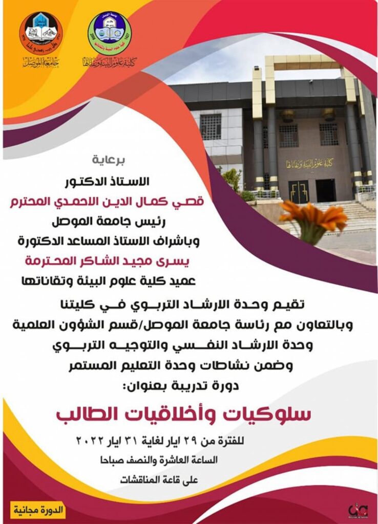 باشراف السيدة عميد الكلية الاستاذ المساعد الدكتورة يسرى مجيد الشاكر والسيد رئيس قسم علوم البيئة الاستاذ المساعد الدكتور احمد نوري محمود اجرى قسم علوم البيئة صباح اليوم الاربعاء 25 ايار 2022 مناقشة طلبة الماجستير في المرحلة التحضيرية في مادة المشروع المقترح.حيث تم تشكيل ثلاث لجان من الاساتذة الاختصاص في القسم وتقسيم الطلبة الى مجاميع تشرف عليها اللجان المشكلة من اجل تقييم مدى ملائمة مشاريع بحوث الماجستير ضمن الاختصاص الدقيق لقسم علوم البيئة وتقديم مقترحات للطلبة من اجل تعزيز البحوث وجعلها ضمن اطار البحوث التطبيقية في مجال علوم البيئة. متمنين لجميع طلبتنا الموفقية والنجاح.شعبة الاعلام والعلاقات العامة