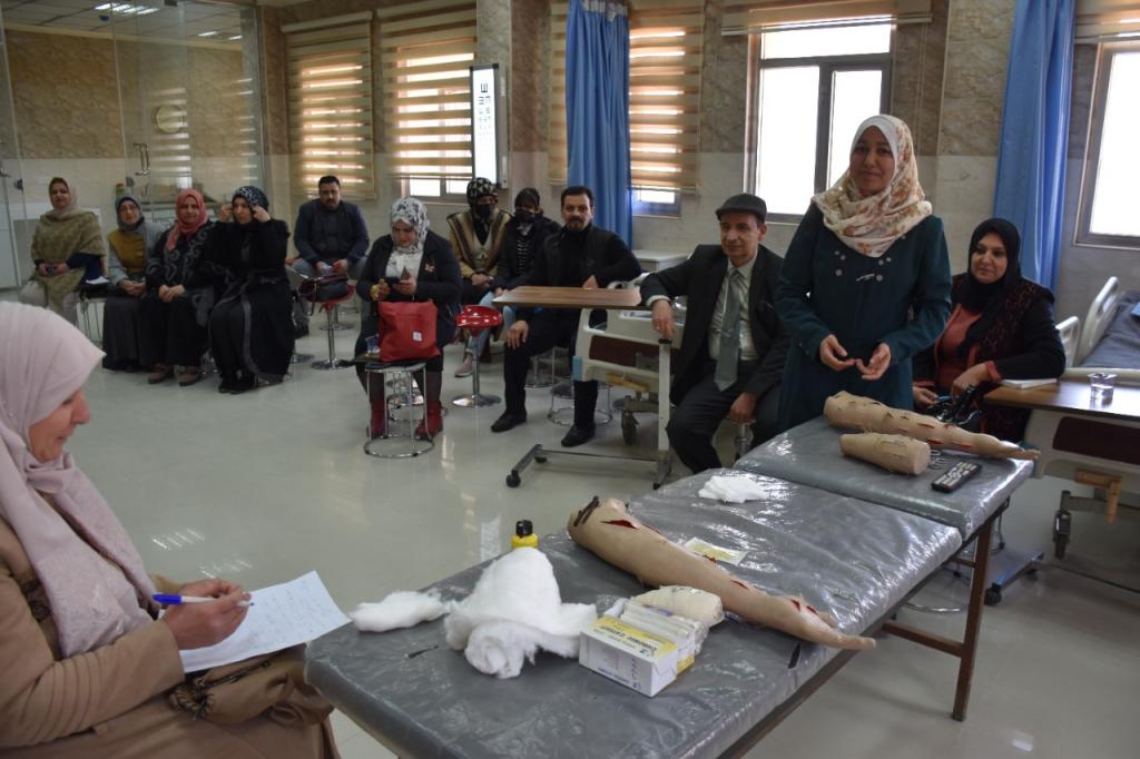 استمرت هذا اليوم 15 اذار 2022 فعاليات دورة الكوارث البيئية واهمية الاسعافات الاولية ليومها الثاني التي يقيمها مركز بحوث البيئة في كلية التمريض عبر محاضرات عدة كانت اهمها محاضرات عن الجروح الناتجة عن الكوارث واسعافاتها والحروق الناتجة عن الكوارث واسعافاتها والكسور الناتجة عن الكوارث واسعافاتها التي قام بالقائها على المشتركين في الدورة كل من الدكتورة هناء حسين مخلف والمدرس محمد صالح عواد والمدرس محمد طارق علي,وقد تضمنت المحاضرات جانبا عمليا ساهم به جميع المشاركين بالدوره.