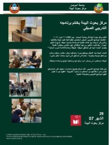 اختتم مركز بحوث البيئة في جامعة الموصل، يوم الثلاثاء 29 تموز 2025، فعاليات البرنامج التدريبي الصيفي المخصص لطلبة كلية علوم البيئة وتقاناتها، والذي يأتي انسجاماً مع أهداف التنمية المستدامة، ولاسيما الهدف الرابع (التعليم الجيد).