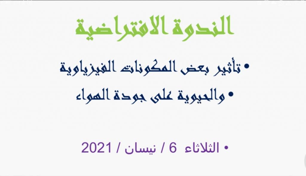 ندوة افتراضية بعنوان (تاثير بعض المكونات الفيزياوية والحيوية على جودة الهواء) في مركز بحوث البيئة .