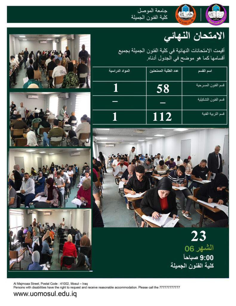 عميد كلية الفنون الجميلة عضواً في لجنة تحكيم علمي في جامعة بغداد