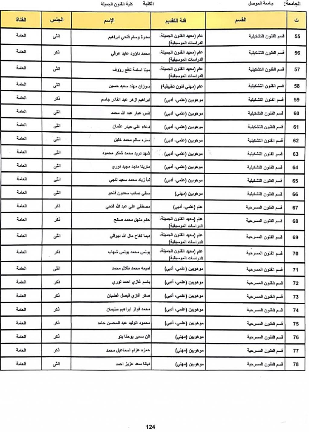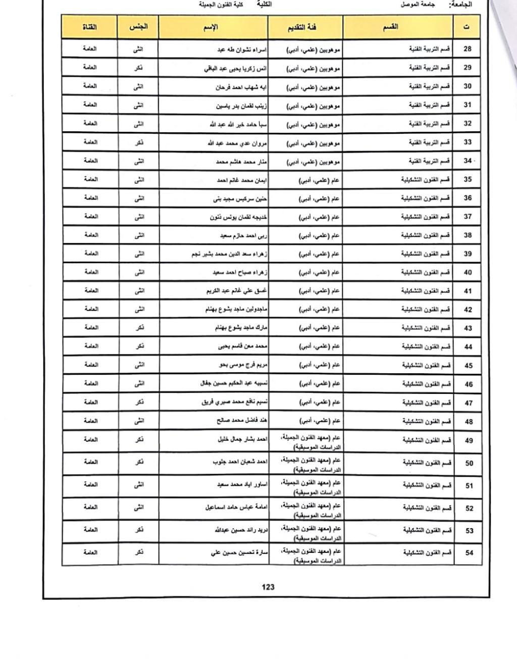 إعلان أسماء الطلبة المقبولين في كلية الفنون الجميلة للعام الدراسي 2020-2021
