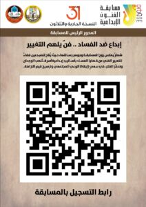 طلبتنا الأعزاء.. منتسبينا الأكارم موظفين و تدريسيين ندعوكم إلى المشاركة في مسابقة الفنون الإبداعية بنسختها الحادية والثلاثون عبر التسجيل في الرابط ادناه.