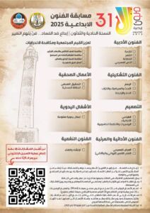 طلبتنا الأعزاء.. منتسبينا الأكارم موظفين و تدريسيين ندعوكم إلى المشاركة في مسابقة الفنون الإبداعية بنسختها الحادية والثلاثون عبر التسجيل في الرابط ادناه.
