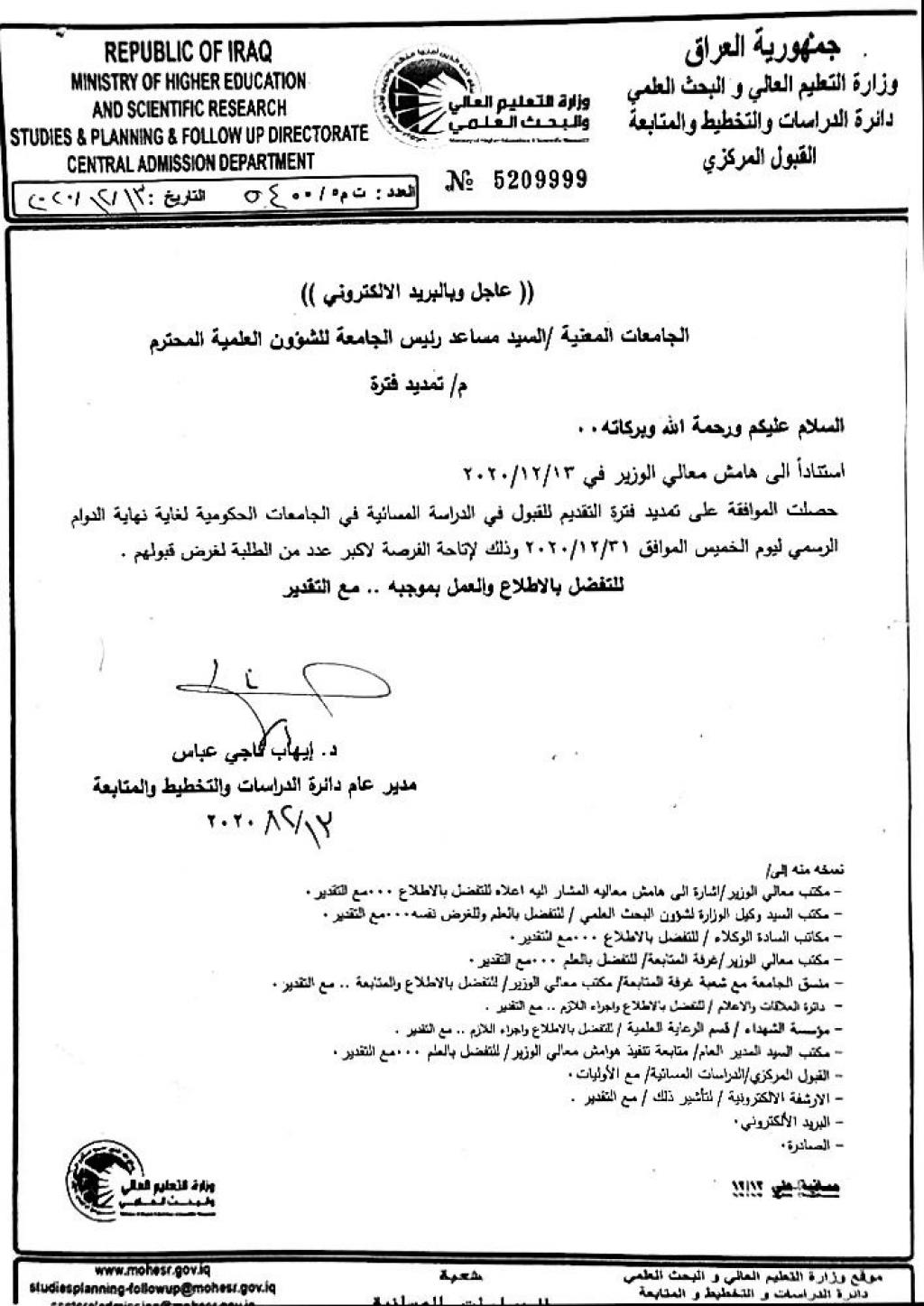 تم تمديد فترة التقديم لغاية يوم 31 / 12 / 2020 للأقسام (قسم التربية الفنية، قسم الفنون المسرحية، قسم الفنون التشكيلية ).