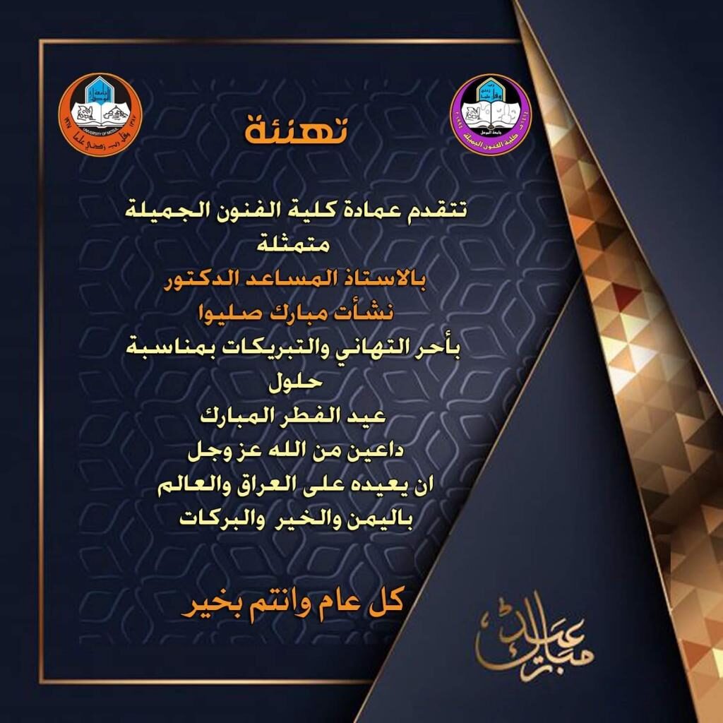 الى المتقدمين للدراسات العليا في كلية الفنون الجميلة / قسم الفنون المسرحية للعام الدراسي ٢٠٢١-٢٠٢٢ وممن اكملوا اجراءات التقديم عن طريق رابط الوزارة ارسال استمارة التقديم مع الاوراق المطلوبة كافة عن طريق ايميل الدراسات العليا للكلية ([email protected]) وجلبها ورقيا الى الكلية وتسليمها لشعبة الدراسات العليا بواقع نسختين اصلية ومصورة وبالسرعة الممكنة لغرض اكمال اجراءات التدقيق وبخلافه لن يتم تدقيق استمارة التقديم.علما بانه تم تمديد فترة التقديم لغاية يوم الاحد الموافق ١٣ / ٦ / ٢٠٢١ .