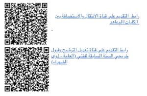الى الطلبة الراغبين بالنقل او الاستضافة او تعديل الترشيح للسنة الدراسية ٢٠٢٥-٢٠٢٦ الدخول الى روابط (QR) المرفقة ادناه للاطلاع على الضوابط والتقديم