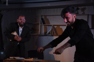 بحضور السادة معاوني العميد العلمي والإداري، وجمعٍ من الأساتذة والموظفين والطلبة الأعزاء ، قدّم طلبة المرحلة الرابعة في قسم الفنون المسرحية العرض المسرحي المميز “عندما يسبقني الظل”، تأليف بيات مرعي اخراج الطالبة نور مزيد وتمثيل الطالب احمد الياس خضر والطالب محمد عبدالله