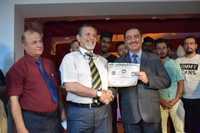 بحضور الاستاذ الدكتور قصي كمال الدين الاحمدي رئيس جامعة الموصل اختتم المهرجان المسرحي اللغوي الاول الذي اقامته كلية الاداب بالتعاون مع قسم الفنون المسرحية في كلية الفنون الجميلة يوم الخميس الموافق ١٦ ايار ٢٠١٩ وعلى قاعة المسرح التجريبي .. حضره الدكتورة اسماء سعود خطاب عميدة كلية الاداب والدكتور صفاء الدين اعبدالله عميد كلية التربية الاساسية والسادة المعاونين وعدد من رؤساء الاقسام وتدريسيي الكلية وجمهور من الطلبة وذوي الاختصاص .. بعرض مسرحي (الشموع الخمسة) باللغة التركية اعقبها عرضا اخر بعنوان الامل باللغة الانكليزية .. وقدم السيد رئيس الحامعة الشهادة التقديرية لصاحب فكرة المهرجان الدكتور نذير عبد الغني العزاوي التدريسي في كلية الفنون الجميلة ومخرج عروض المهرجان .. وقد ابدى الاستاذ الدكتور قصي كمال الدين الاحمدي ارتياحه واعجابه بعروض المهرجان مثنيا على جهود القائمين عليه في دعم وتشجيع المهارات والطاقات الشابة للجامعة