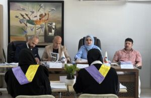اساتذة كلية الفنون الجميلة يناقشون بحوث تخرج المرحلة الرابعة.