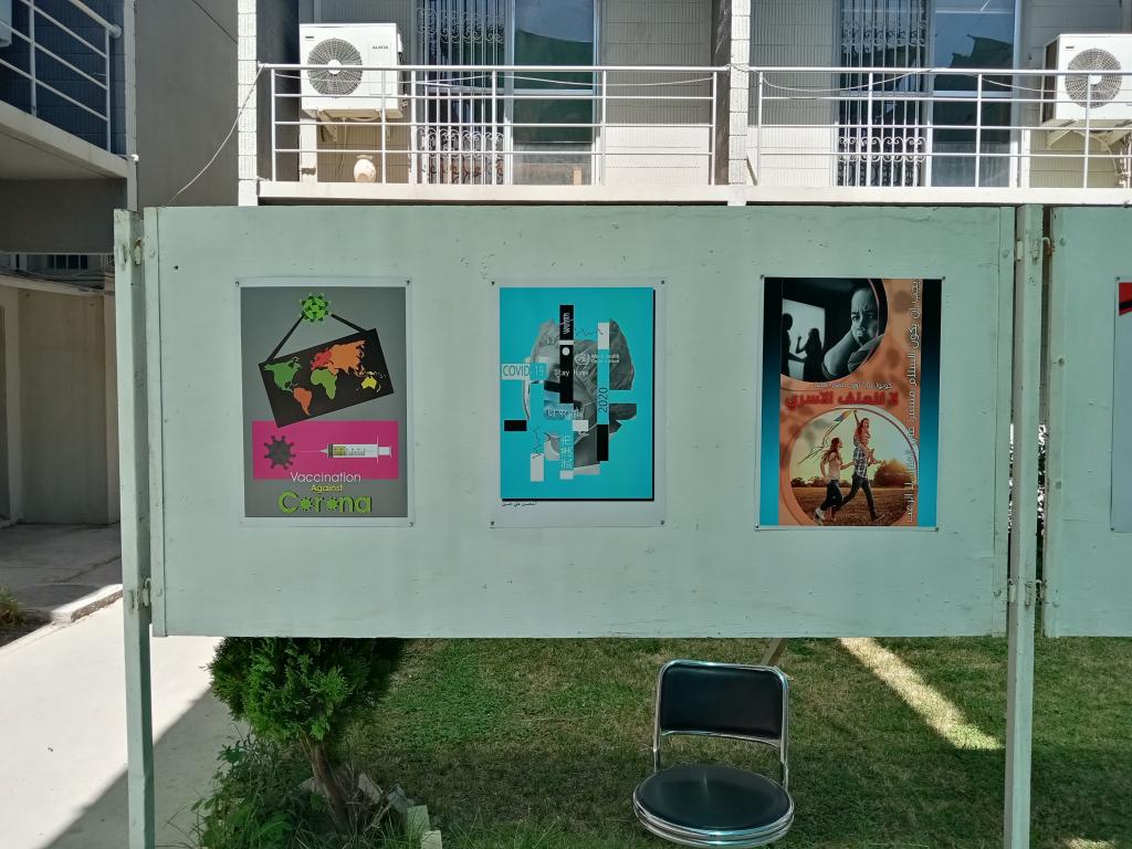 وضم المعرض ٤٥ ملصق ارشادي لعدد من اساتذة الكلية والجامعات العراقية والطلبة ، تناول المعرض الوقاية من الامراض الوبائية وظاهرة الادمان التي تواجه الانسان المعاصر موجهاً الى المجتمع كرسالة بصرية ذات خطاب توجيهي.