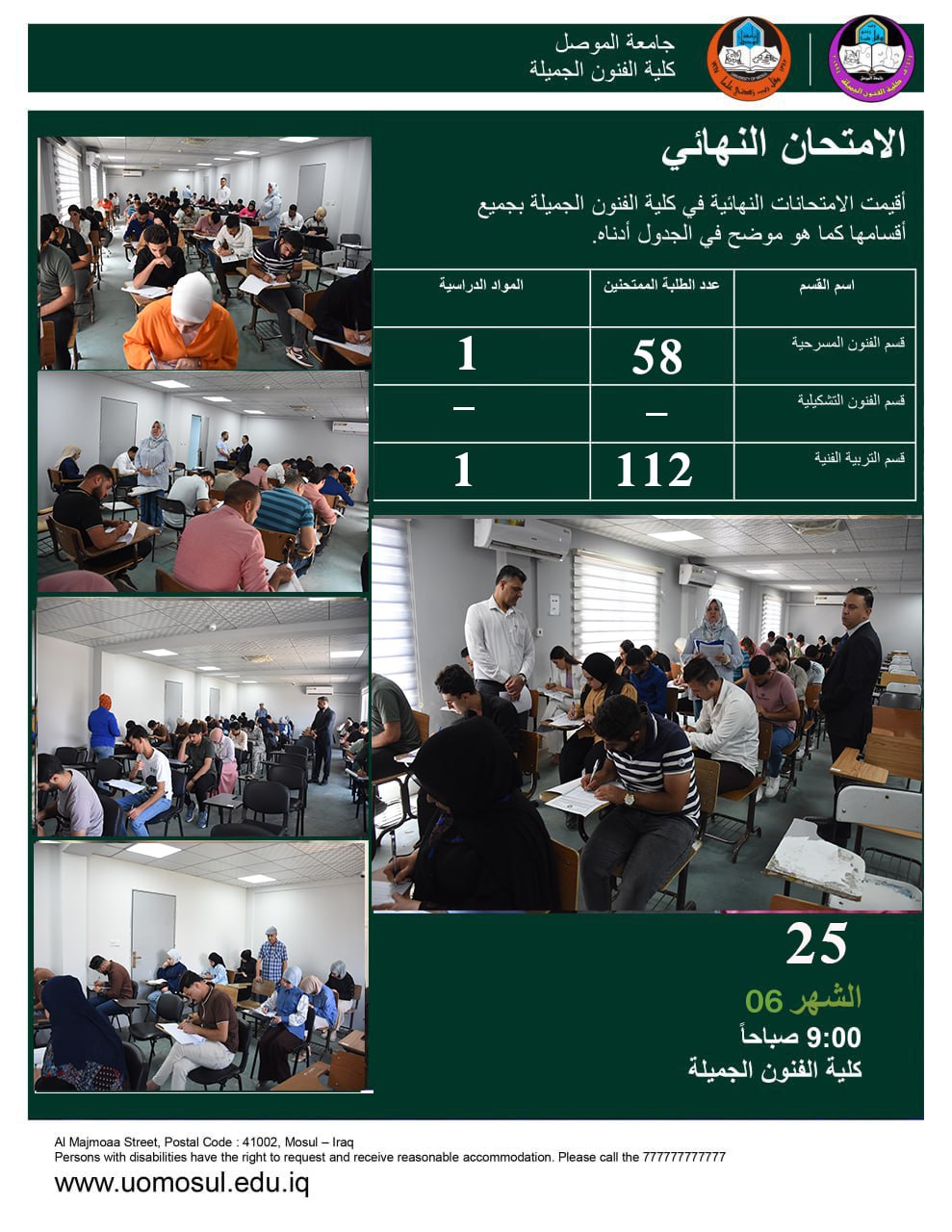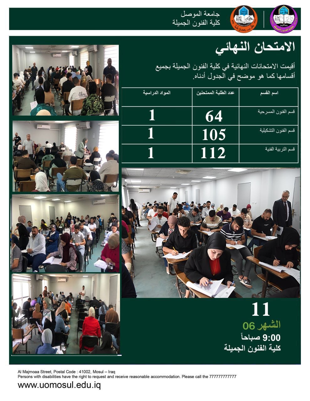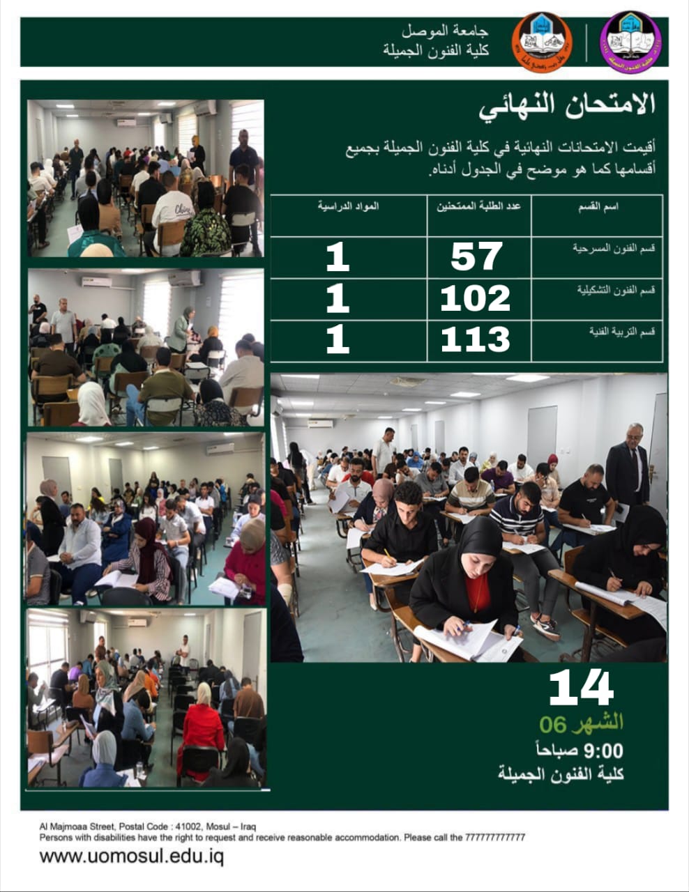 بإشراف الأستاذ الدكتور حامد ابراهيم الراشدي عميد كلية الفنون الجميلة وبمتابعة الأستاذ الدكتور بشار عبد الغني محمد معاون العميد للشؤون العلمية تم البدء بامتحان طلبة [إقرأ المزيد]