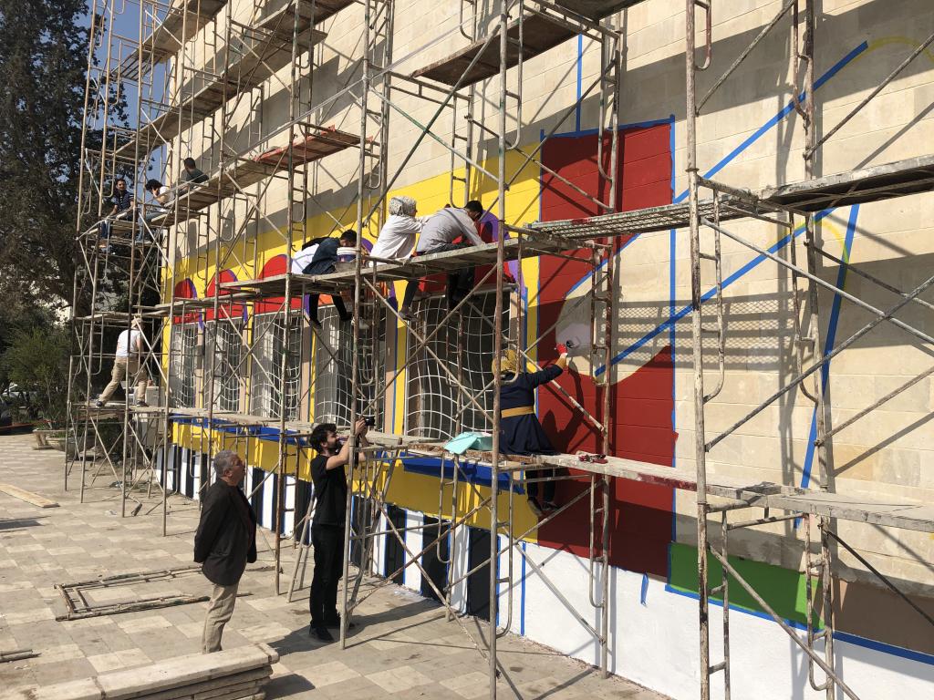 سعى رئيس جامعة الموصل الاستاذ الدكتور قصي كمال الدين الاحمدي منذ تسلمه رئاسة الجامعة الى إحداث نقلة نوعية في هذه الجامعة العريقة ابتدأها بفتح ابواب الجامعة مشرعة امام المجتمع الموصلي ومجتمع نينوى عموما ويسعى الان الارتقاء بمنتسبيه واساتذته في تبادل وتلاقح الخبرات مع اعرق الجامعات والمؤسسات العلمية والبحثية و (الفنية) العالمية – وها هو اليوم يرتقي بكلية الفنون الجميلة في هذا العمل الفني الابداعي على احد جدران المركز الطلابي وقرب الثور المجنح وبالتعاون مع احدى المنظمات الفرنسية الفنية لتكتمل واجهة المركز الطلابي في جامعة الموصل القا وجمالا. بوركت كل الجهود من اجل الارتقاء بجامعتنا