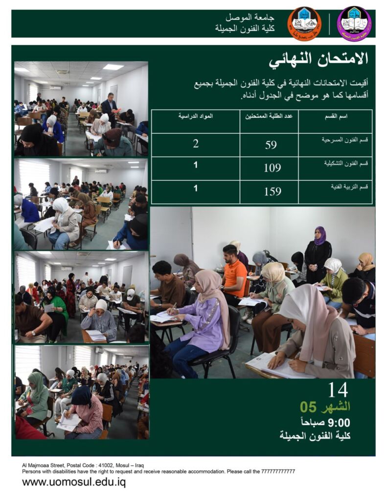 الامتحانات النهائية لطلبة الدراسات الاولية / احصائية يوم ١٤ ايار ٢٠٢٥