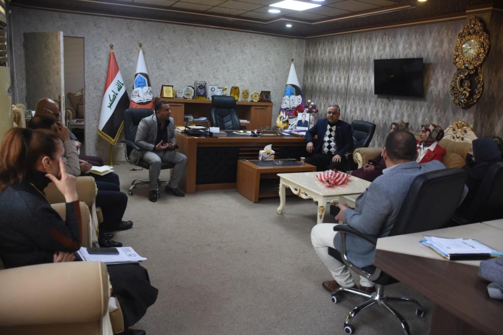 بحضور الأستاذ المساعد الدكتور بشار عبد الغني محمد معاون العميد للشؤون العلمية والاستاذ المساعد الدكتور مصعب ابراهيم محمد تم عقد اجتماع موسّع مع مسؤولي وحدات وشعب الكلية من اجل الارتقاء بالعمل الاداري والعلمي وتذليل الصعوبات .