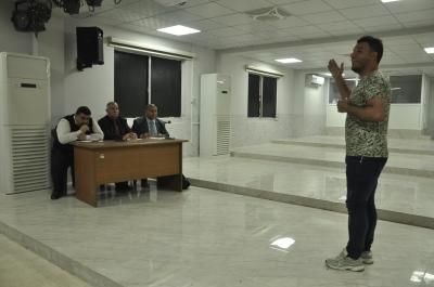 ضمن فعاليات مسابقة الفنون الابداعية تم تحكيم اصوات طلبة ومنتسبي كليات ومراكز ودوائرالجامعة في الغناء والموسيقى يوم الاحد الموافق 14 نيسان 2019 في قاعة مسرح كلية الفنون الجميلة , وتألفت اللجنة برئاسة التدريسي هاني عبدالله الدباغ من كلية الفنون الجميلة وعضوية كل من السيد شامل شيت العاني والسيد انس سمير من ديوان رئاسة جامعة الموصل , استمعت اللجنة الى اصوات المشاركين بعد ان تم تهيأة قاعة المسرح لتتناسب مع القيمة الفنية للمسابقة الابداعية وستستمر اللجنة بالتحكيم الى ظهر يوم الاثنين الموافق 15 نيسان 2019مع تمنياتنا لجميع المشاركين بالتوفيق