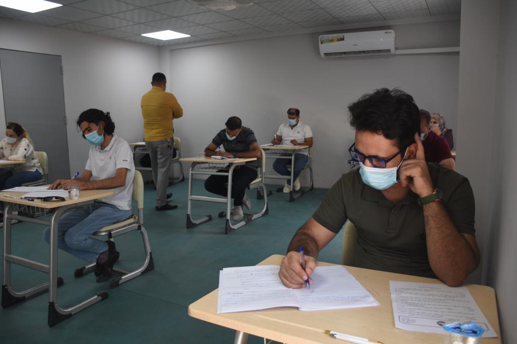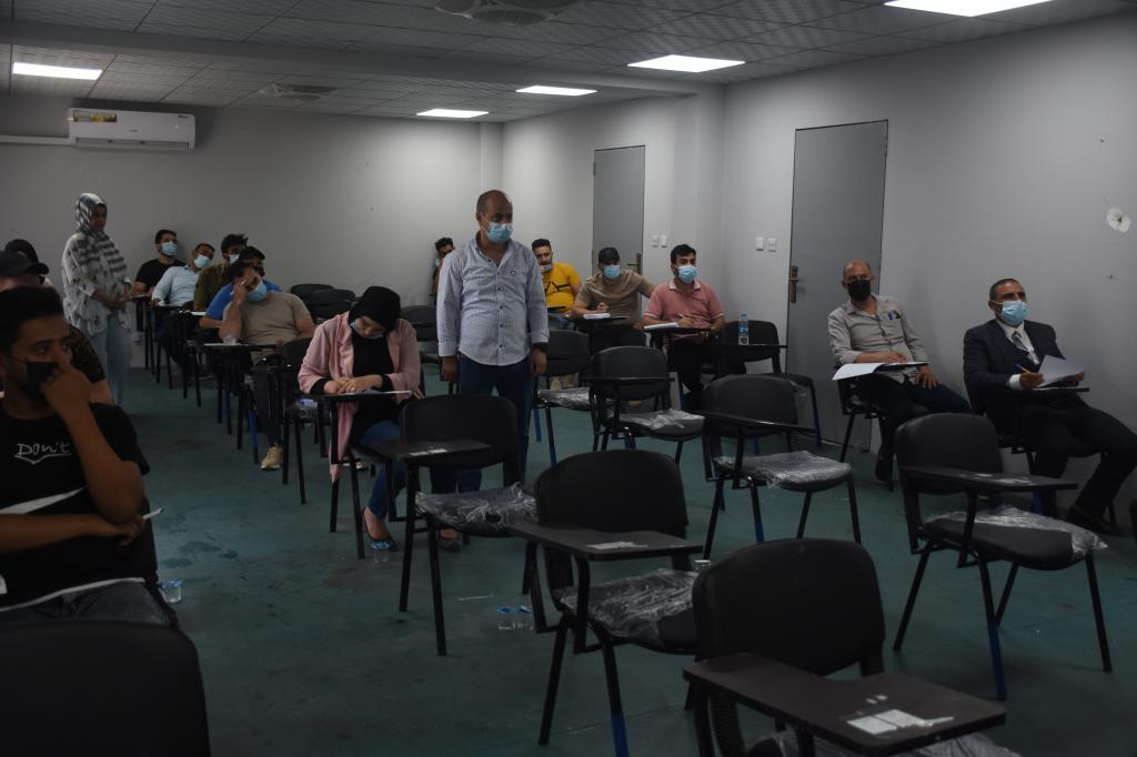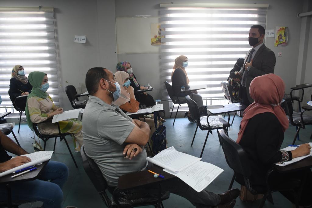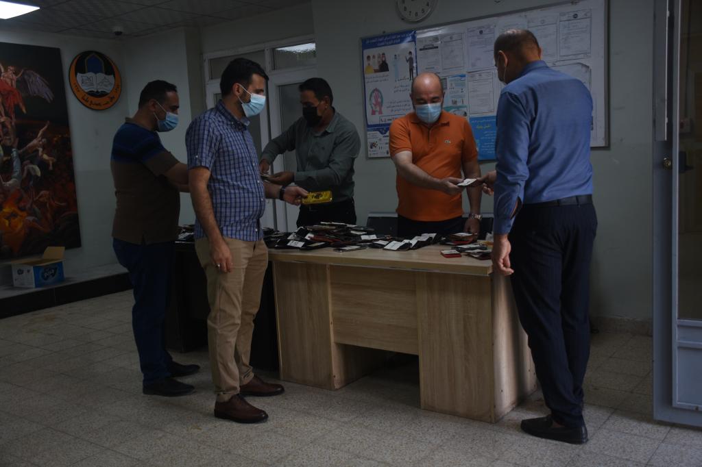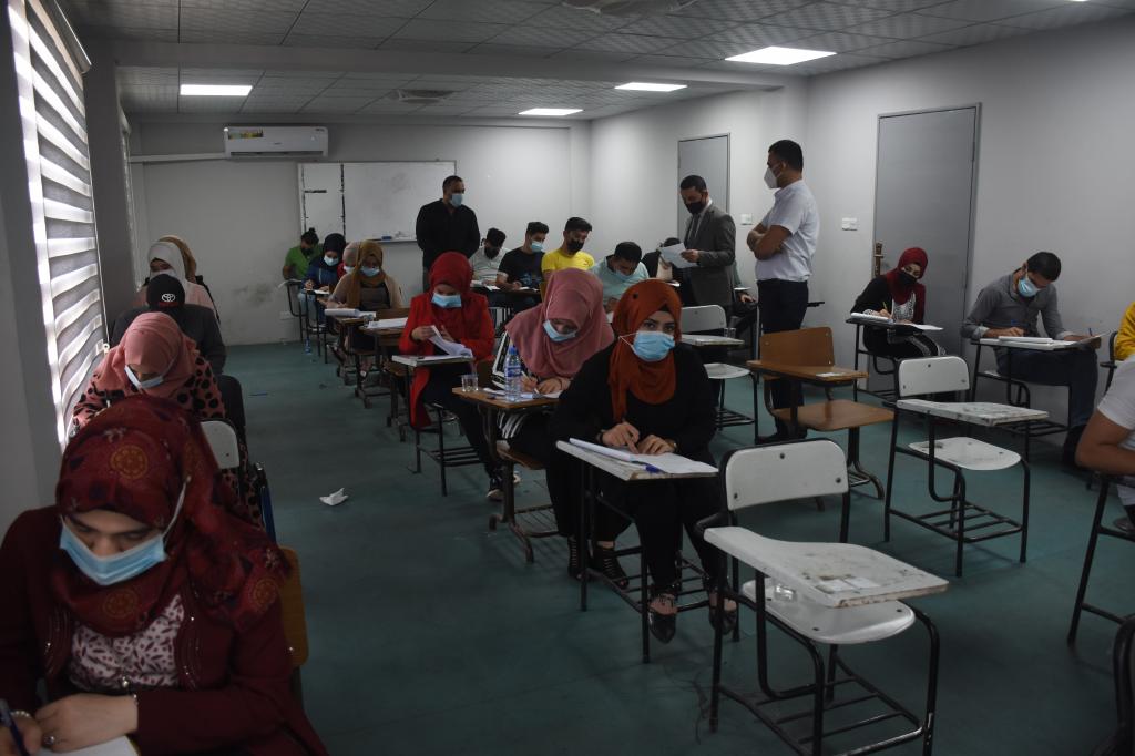 كما تفقد السيد عميد كلية الفنون الجميلة الاستاذ المساعد الدكتور نشأت مبارك صليوا برفقة السادة المعاونين سير عملية الامتحانات وتأكيده على حرص عمادة الكلية لإجراءات الوقاية في ظل جائحة كورونا خلال فترة الامتحانات وتعفير القاعات الامتحانية للحفاظ على سلامة الطلبة اثناء ادائهم الامتحانات مع مراعاة ارتداء الكمامات والتباعد والالتزام بالشروط الوقائية، و ثمن الجهود المبذولة للاقسام العلمية واللجان الامتحانية والمراقبين من اعضاء الهيئة التدريسية وكادر الكلية لتظافر الجهود في سبيل انجاح واتمام الامتحانات الحضورية والالكترونية .متمنيا الموفقية والنجاح لجميع الطلبة