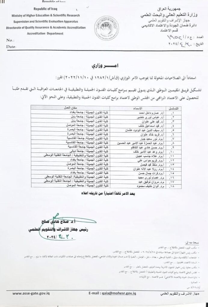 باشرت كلية الفنون الجميلة بإجراء الامتحانات النهائية لطلبة الدراسات الاولية الصباحية والمسائية لكافة الاقسام يوم الاحد الموافق ١٢ ايار للعام الدراسي ٢٠٢٣-٢٠٢٤.