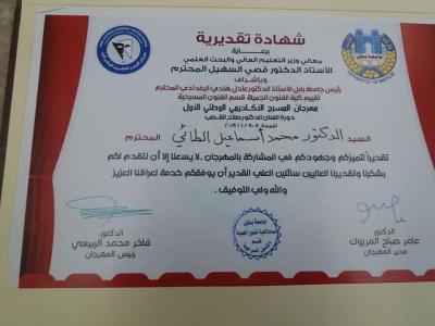 تكريم الدكتور محمد اسماعيل الطائي في مهرجان المسرح الاكاديمي الوطني الاول