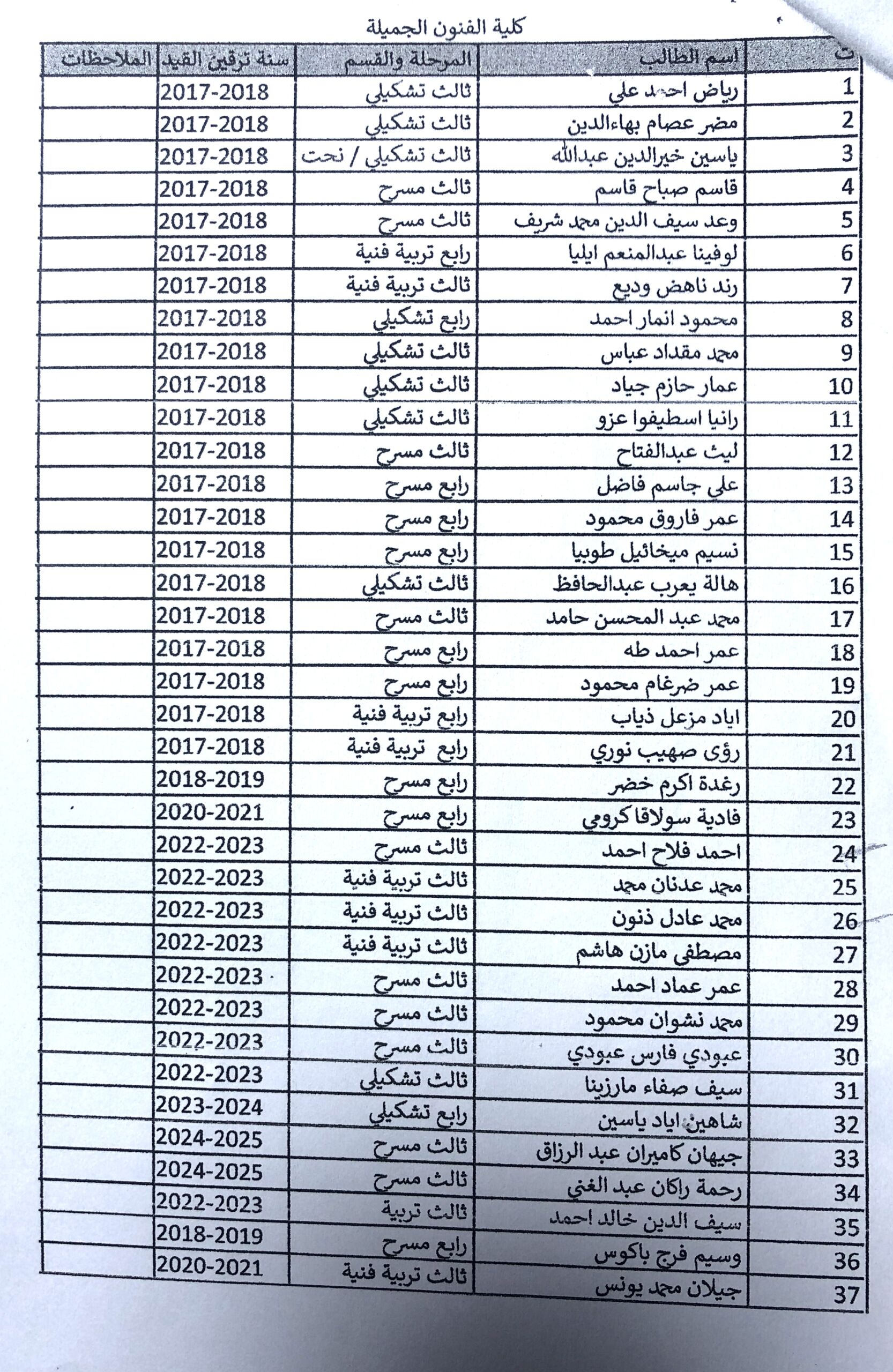 على الطلبة المعادين للدراسة من المرقنة قيودهم والمدرجة اسمائهم في القائمة المرفقة مراجعة شعبة التسجيل الصباحي لغرض اكمال متطلبات العودة للدراسة للعام ٢٠٢٥-٢٠٢٦.